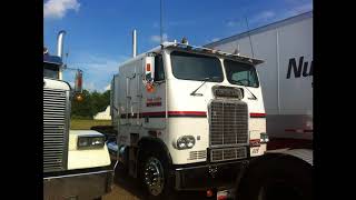 A bunch of older 18 wheelers in the parking lot at Der Dutchman in Bellville Ohio after a truck show in Ashland,Ohio.Watch Now