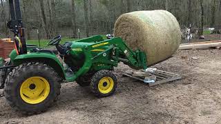 I was asked a question on a previous video. Can the John Deere 3032E handle a round bale? The answer is yes, without a doubt. I move hay around the farm ...